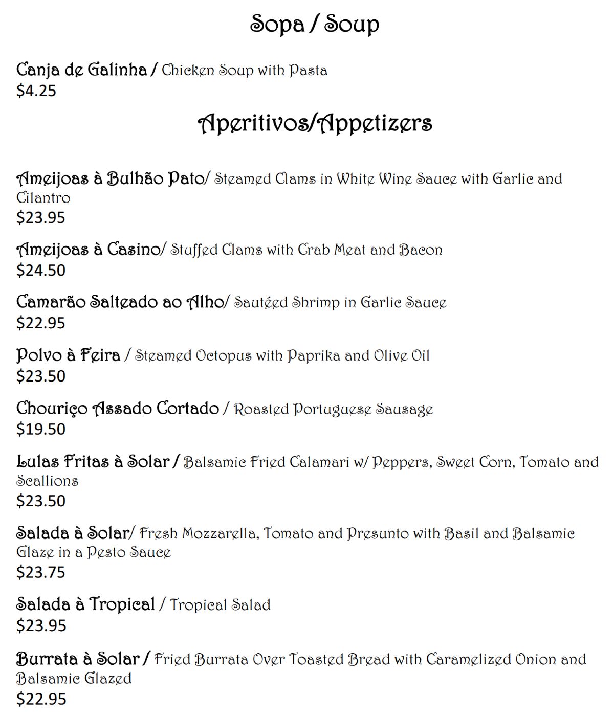 VALENTINE’S DAY MENU